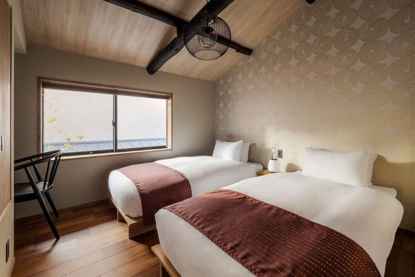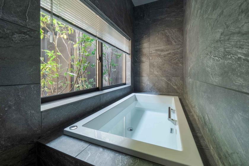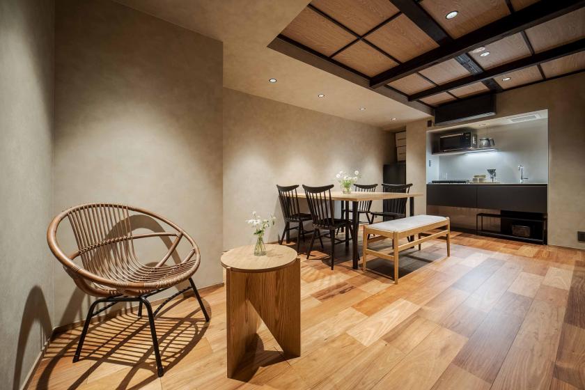 - 'Yumeha' machiya house: a traditional Japanese holiday home (vacation rental) built during the Taisho Period with over 100 years of history. This machiya house is located just steps from Nijō Castle and Shinsen-en, a historic garden once enjoyed by the imperial court. Built in the classic unagi no nedoko style, meaning “eel’s bed,” the machiya extends deep into the property with a long, narrow layout that is characteristic of traditional townhouses in Kyoto. This architectural form allows light and air to flow naturally through the home while preserving a sense of privacy. Original wooden beams stretch across the ceiling, connecting you to over a century of history. The living-dining room offers views of a Japanese garden, where you can admire the tsuboniwa greenery and traditional kakejiku scroll art. The spacious kitchen comes fully equipped for your stay, while the bathroom features a soaking tub with views of the garden and a waterfall shower head. Upstairs, you'll find a classic tatami room perfect for unwinding in traditional Japanese style. Yumeha offers 3 bedrooms to comfortably accommodate your group: one with a double bed, one with two single beds, and a tatami room with futon bedding. For added convenience, the house includes floor heating, a washer-dryer, and bidets on both floors.